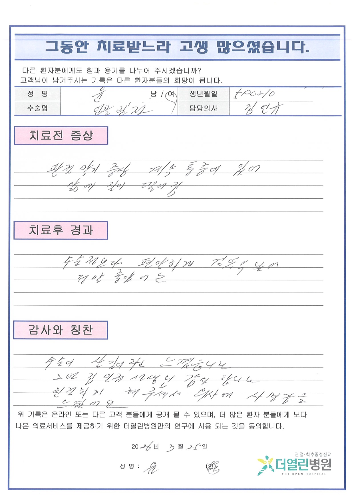 양측 무릎 인공관절치환술 페이지 정보 작성자 관리자 댓글 0건 조회 3회 작성일 26-04-07 11:16 본문 목록 이전글좌측 반월상연골판부분절제술 26.04.07 다음글우측 팔꿈치 외측 측부인대 봉합술 26.04.07 댓글목록 댓글목록 등록된 댓글이 없습니다.