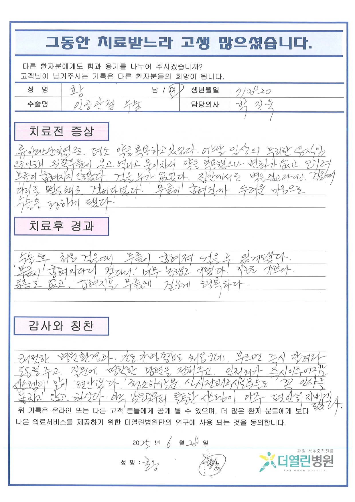 좌측 무릎 인공관절치환술 페이지 정보 작성자 관리자 댓글 0건 조회 41회 작성일 25-07-02 15:05 본문 목록 이전글양측 무릎 인공관절치환술 25.07.02 다음글우측 무릎 인공관절치환술 25.07.02 댓글목록 댓글목록 등록된 댓글이 없습니다.