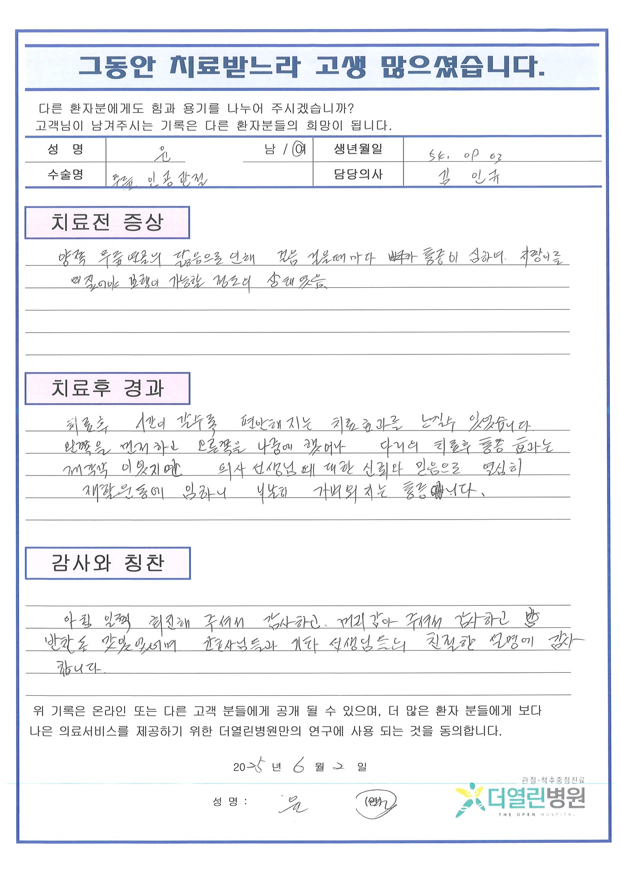 양측 무릎 인공관절치환술 페이지 정보 작성자 관리자 댓글 0건 조회 44회 작성일 25-07-02 15:05 본문 목록 이전글좌측 무릎 인공관절치환술 25.07.02 다음글우측 무릎 인공관절치환술 25.07.02 댓글목록 댓글목록 등록된 댓글이 없습니다.