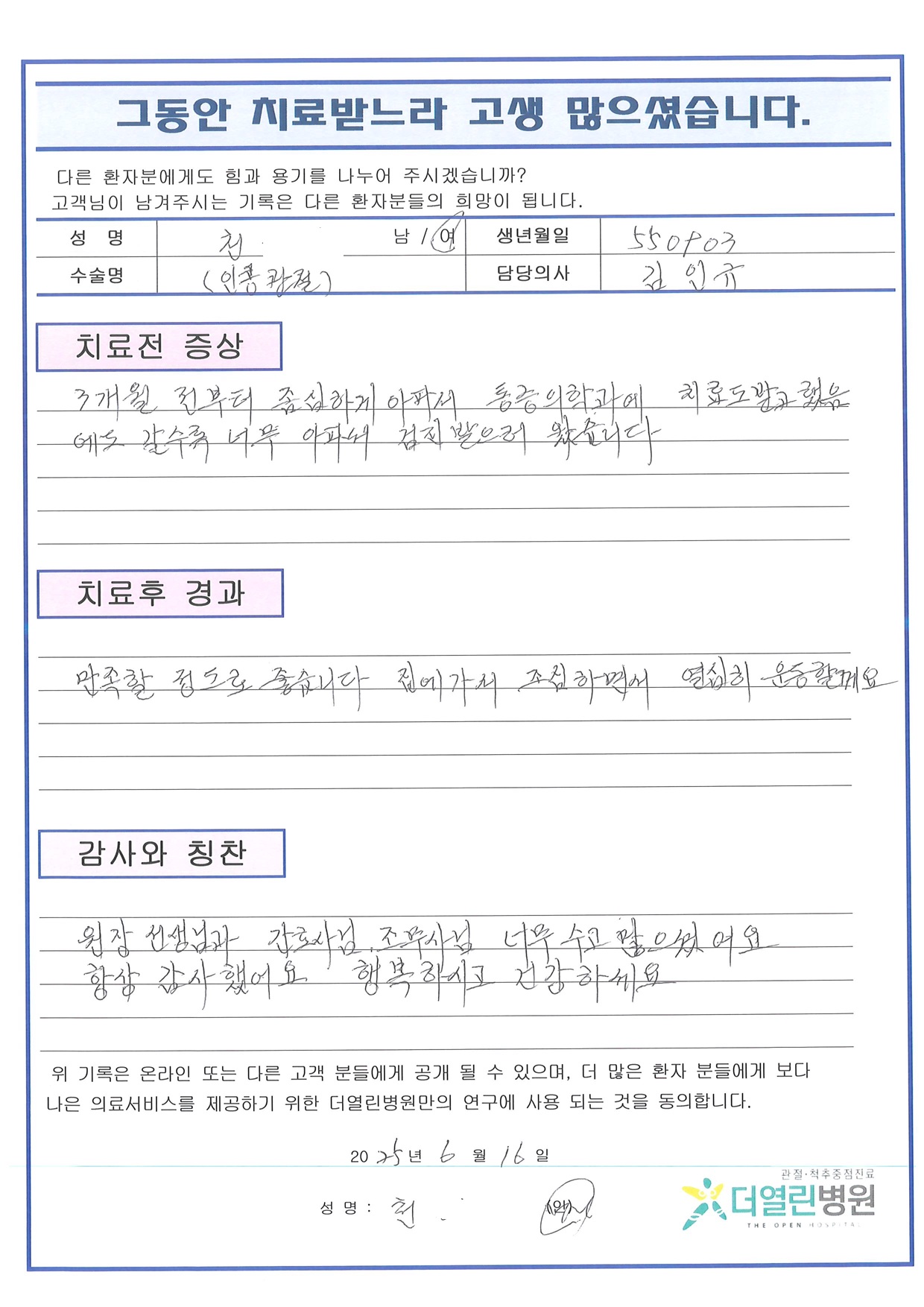 좌측 무릎 인공관절치환술 페이지 정보 작성자 관리자 댓글 0건 조회 34회 작성일 25-07-02 15:05 본문 목록 이전글양측 무릎 인공관절치환술 25.07.02 다음글양측 무릎 인공관절치환술 25.07.02 댓글목록 댓글목록 등록된 댓글이 없습니다.