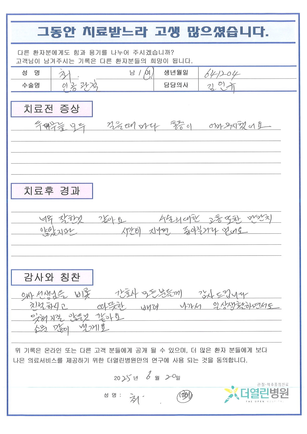 양측 무릎 인공관절치환술 페이지 정보 작성자 관리자 댓글 0건 조회 36회 작성일 25-07-02 15:05 본문 목록 이전글양측 무릎 인공관절치환술 25.07.02 다음글좌측 무릎 인공관절치환술 25.07.02 댓글목록 댓글목록 등록된 댓글이 없습니다.