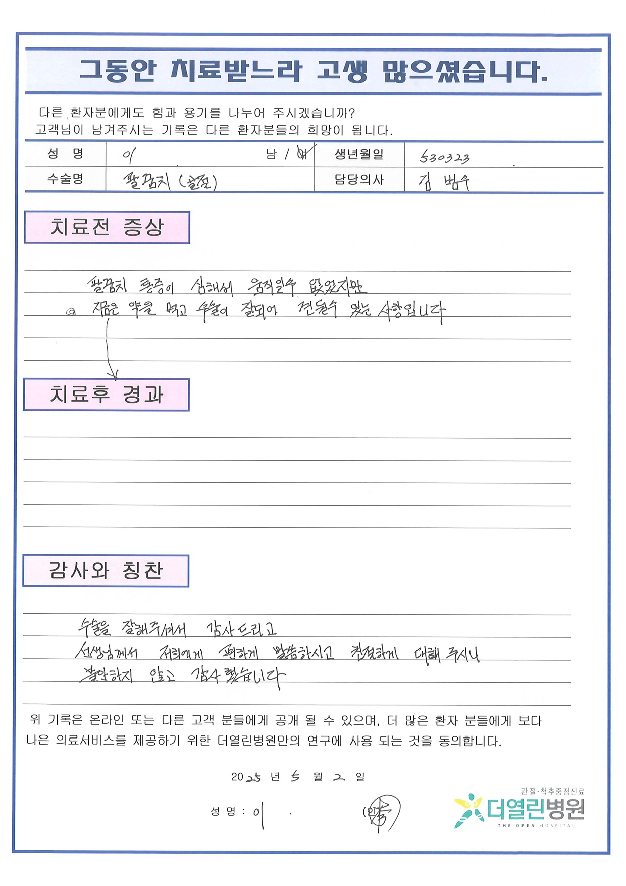 요골인공관절치환술 및 관혈적 정복술 및 금속못 고정술 페이지 정보 작성자 관리자 댓글 0건 조회 50회 작성일 25-06-07 09:19 본문 목록 이전글삼복사 골절 관혈적 정복술 및 금속판 고정술 25.06.07 다음글우측 무릎의 반달연골부분절제술 및 소파술 25.06.07 댓글목록 댓글목록 등록된 댓글이 없습니다.