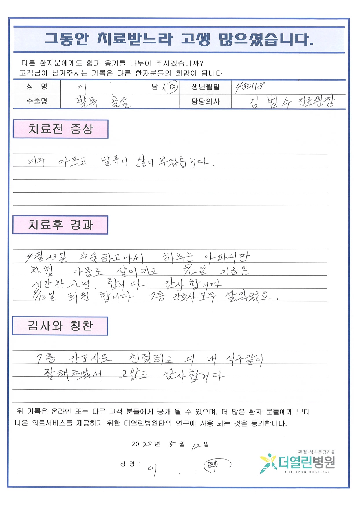 삼복사 골절 관혈적 정복술 및 금속판 고정술 페이지 정보 작성자 관리자 댓글 0건 조회 178회 작성일 25-06-07 09:19 본문 목록 이전글좌측 제5수지 근위지골 관혈적 정복술 및 금속판 고정술 25.06.07 다음글요골인공관절치환술 및 관혈적 정복술 및 금속못 고정술 25.06.07 댓글목록 댓글목록 등록된 댓글이 없습니다.