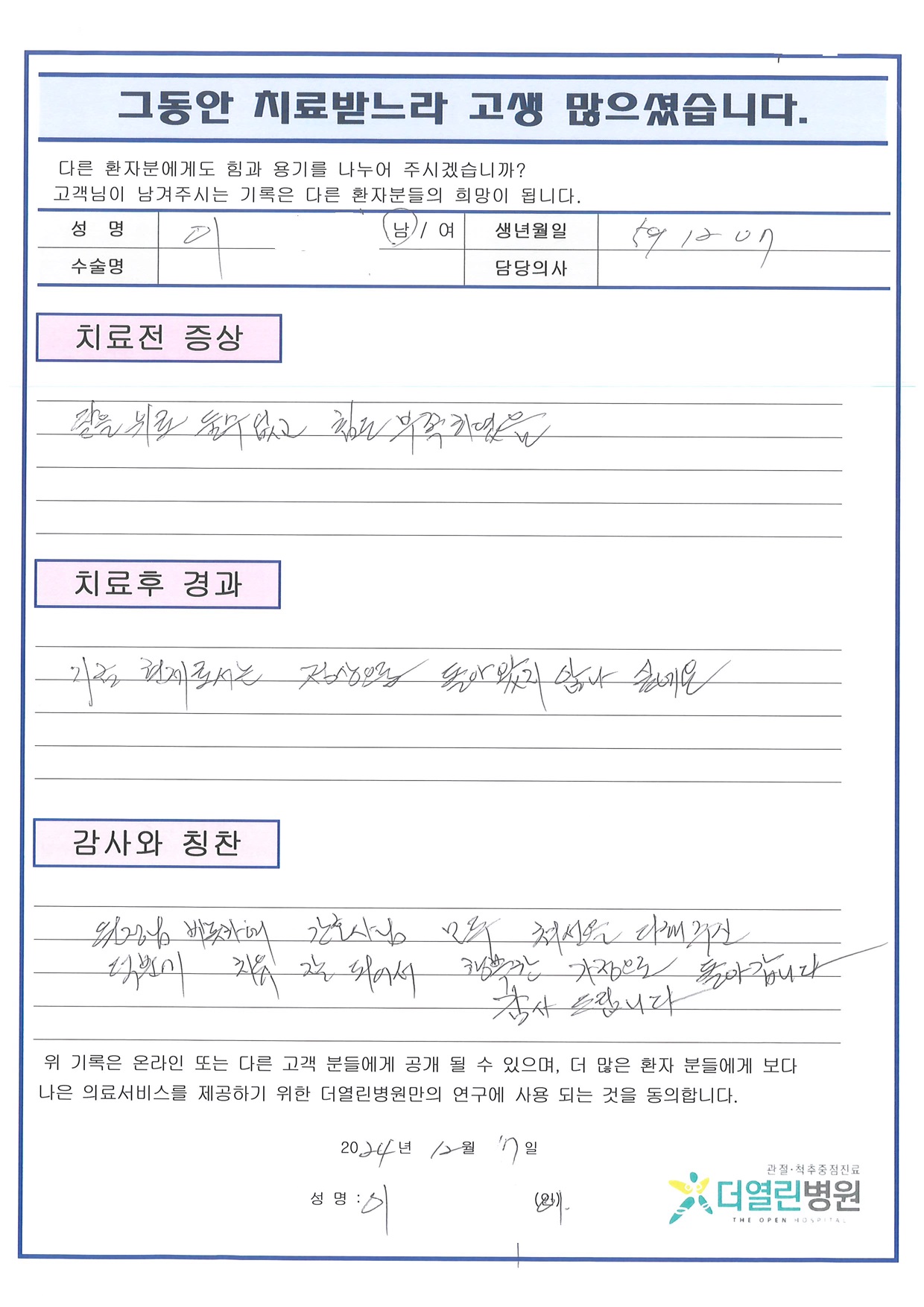좌측 회전근개봉합술, 이두장건절제술, 견봉성형술, 활액낭절제술 페이지 정보 작성자 관리자 댓글 0건 조회 143회 작성일 25-01-07 11:32 본문 목록 이전글좌측 반월상연골절제술 25.01.07 다음글좌측 무릎 세척술 및 관절낭 봉합술 25.01.07 댓글목록 댓글목록 등록된 댓글이 없습니다.