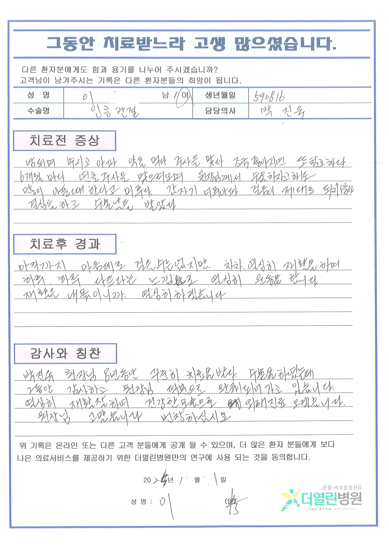 양측 무릎 인공관절치환술 페이지 정보 작성자 관리자 댓글 0건 조회 114회 작성일 25-02-11 15:59 본문 목록 이전글양측 무릎 인공관절치환술 25.02.11 다음글좌측 반월상연골절제술 25.01.07 댓글목록 댓글목록 등록된 댓글이 없습니다.