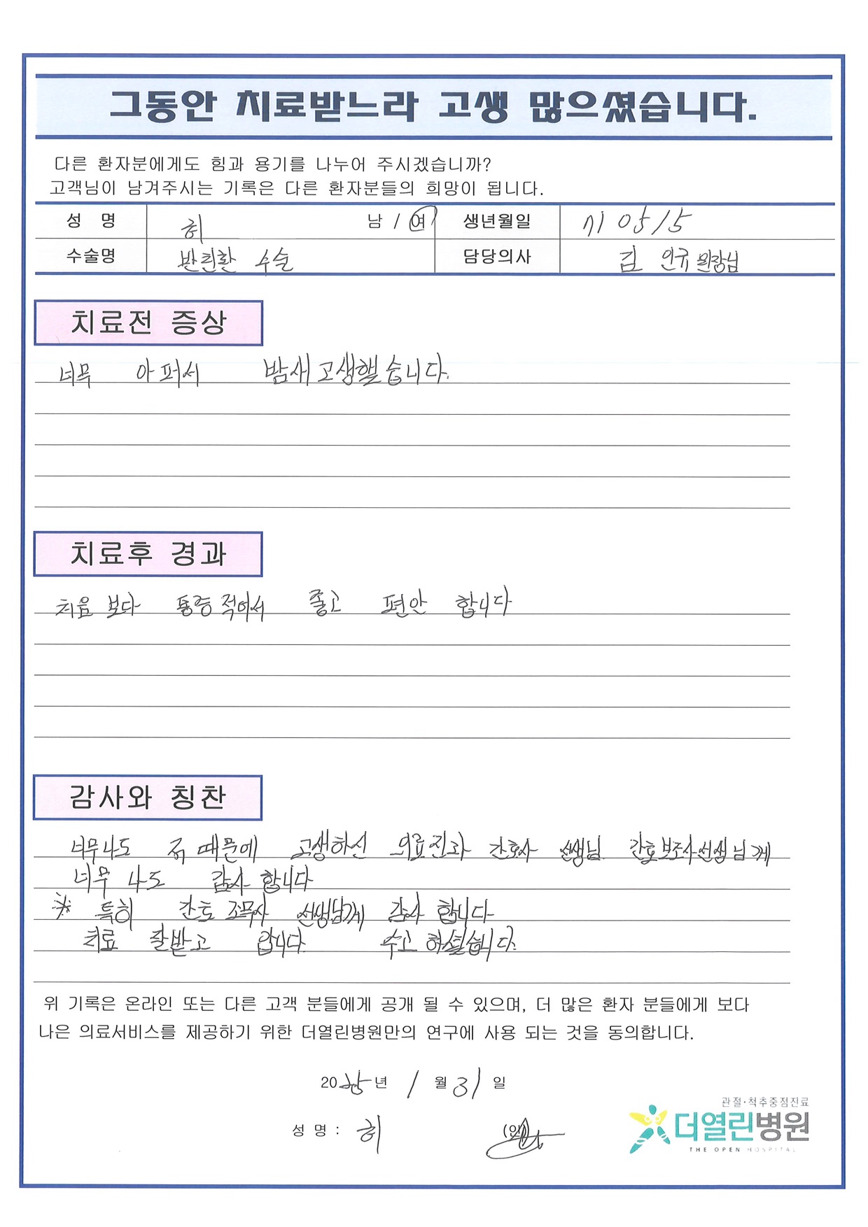 우측 무릎 인공관절치환술 페이지 정보 작성자 관리자 댓글 0건 조회 97회 작성일 25-02-11 16:00 본문 목록 이전글좌측 전방십자인대 재건술 25.02.11 다음글좌측 무릎 인공관절치환술 25.02.11 댓글목록 댓글목록 등록된 댓글이 없습니다.