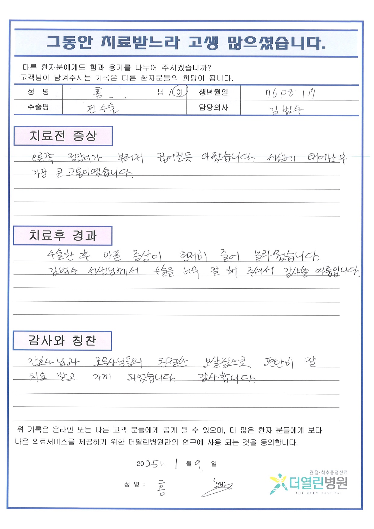 우측 원위 경골 및 비골의 골절 정복술 및 금속판 고정술 페이지 정보 작성자 관리자 댓글 0건 조회 126회 작성일 25-02-11 16:14 본문 목록 이전글우측 무릎 인공관절치환술 25.03.06 다음글좌측 근위경골 골절 후 불유합 자가골이식술 및 금속판 추가 고정술 25.02.11 댓글목록 댓글목록 등록된 댓글이 없습니다.