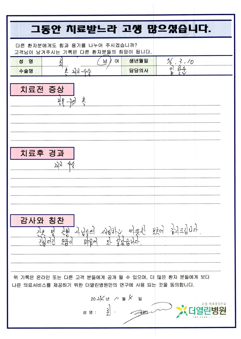 좌측 아래다리 피하지방내 종양절제생검술 페이지 정보 작성자 관리자 댓글 0건 조회 119회 작성일 24-12-05 15:54 본문 목록 이전글좌측 카티스템 및 근위경골절골술 24.12.05 다음글우측 반월상연골부분절제술 및 경골제거술 24.12.05 댓글목록 댓글목록 등록된 댓글이 없습니다.