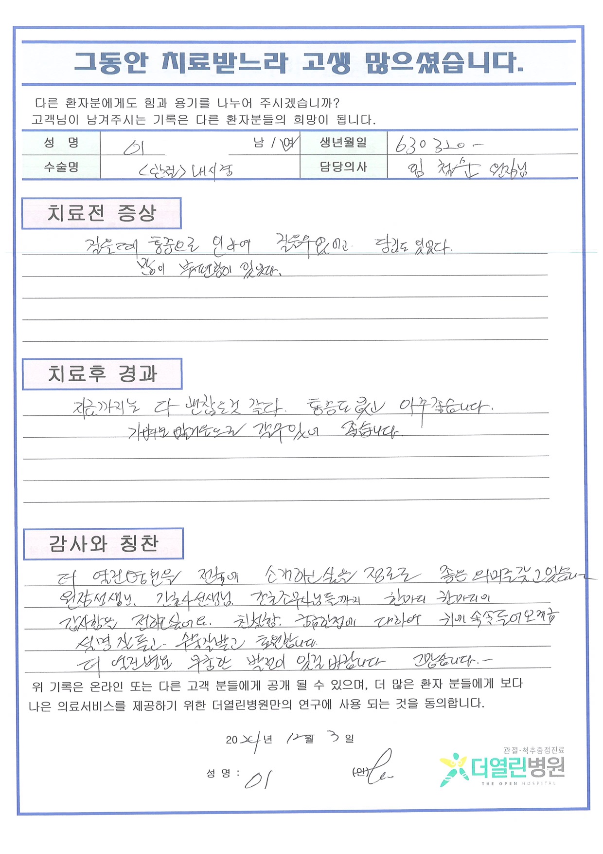 우측 반월상연골부분 절제술 페이지 정보 작성자 관리자 댓글 0건 조회 105회 작성일 25-01-07 11:28 본문 목록 이전글양측 반월상연골부분절제술 25.01.07 다음글좌측 반월상연골봉합술 25.01.07 댓글목록 댓글목록 등록된 댓글이 없습니다.