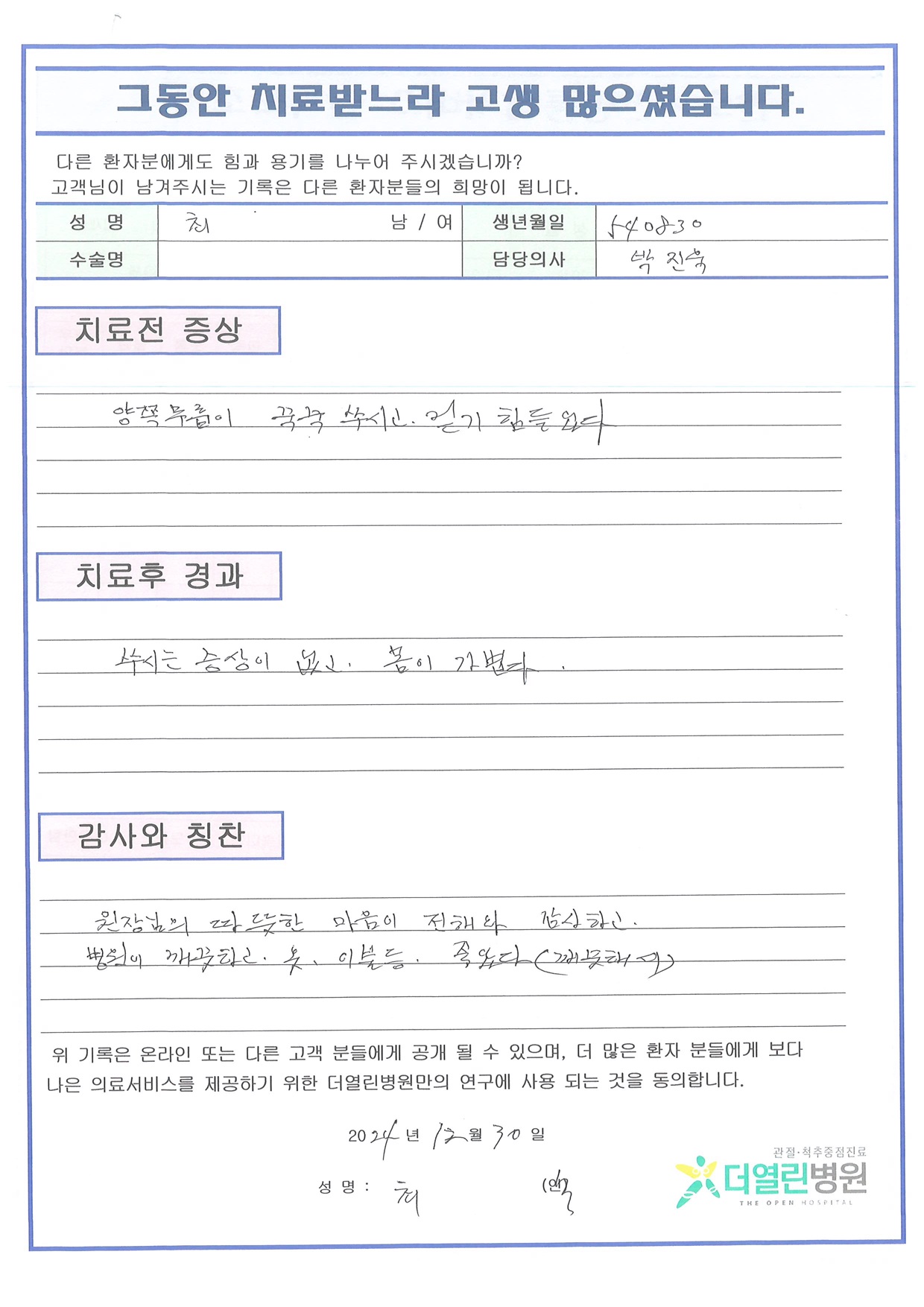 양측 반월상연골부분절제술 페이지 정보 작성자 관리자 댓글 0건 조회 116회 작성일 25-01-07 11:29 본문 목록 이전글양측 무릎 인공관절치환술 25.01.07 다음글우측 반월상연골부분 절제술 25.01.07 댓글목록 댓글목록 등록된 댓글이 없습니다.