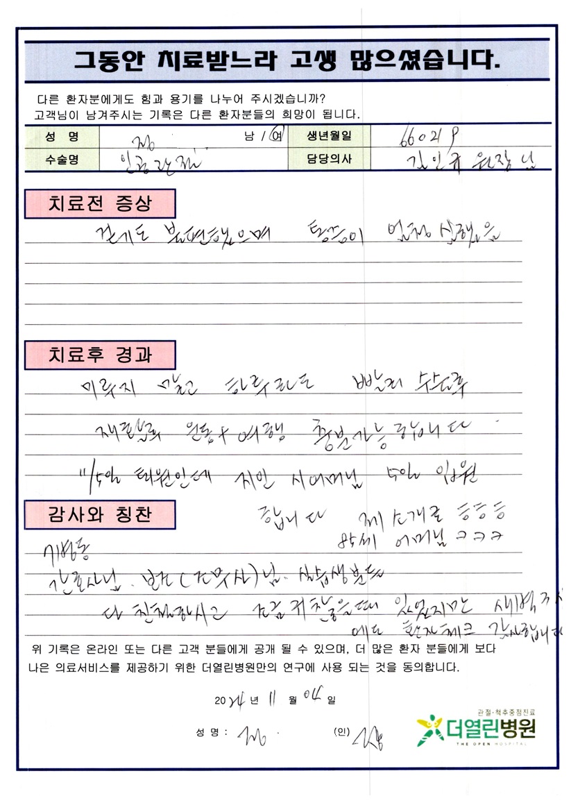 우측 무릎 인공관절치환술 페이지 정보 작성자 관리자 댓글 0건 조회 115회 작성일 24-12-05 15:51 본문 목록 이전글우측 무릎 인공관절치환술 24.12.05 다음글우측 반월상연골부분절제술 24.12.05 댓글목록 댓글목록 등록된 댓글이 없습니다.