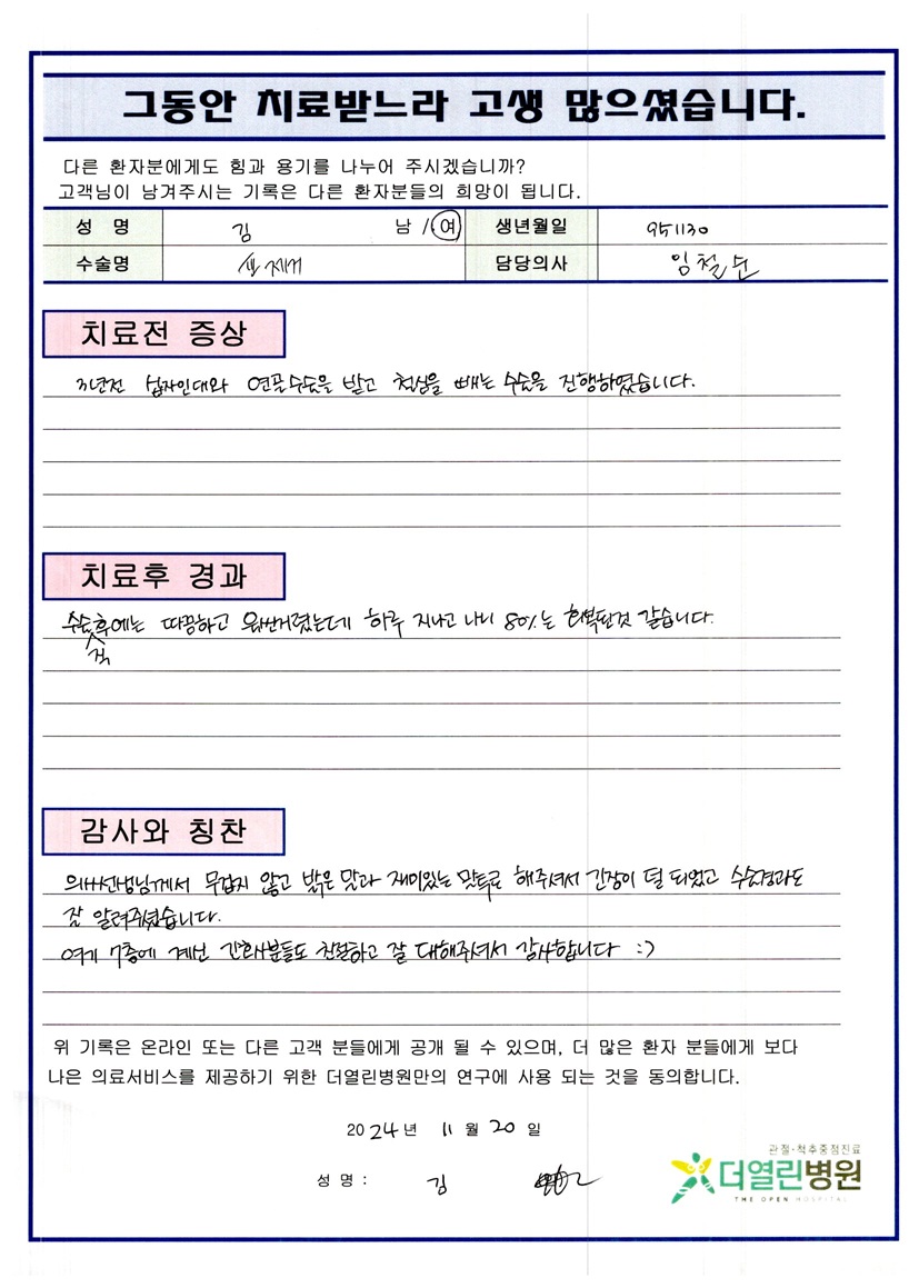 우측 반월상연골부분절제술 및 경골제거술 페이지 정보 작성자 관리자 댓글 0건 조회 116회 작성일 24-12-05 15:54 본문 목록 이전글좌측 아래다리 피하지방내 종양절제생검술 24.12.05 다음글우측 반월상연골봉합술 및 장하지 부목고정 24.12.05 댓글목록 댓글목록 등록된 댓글이 없습니다.