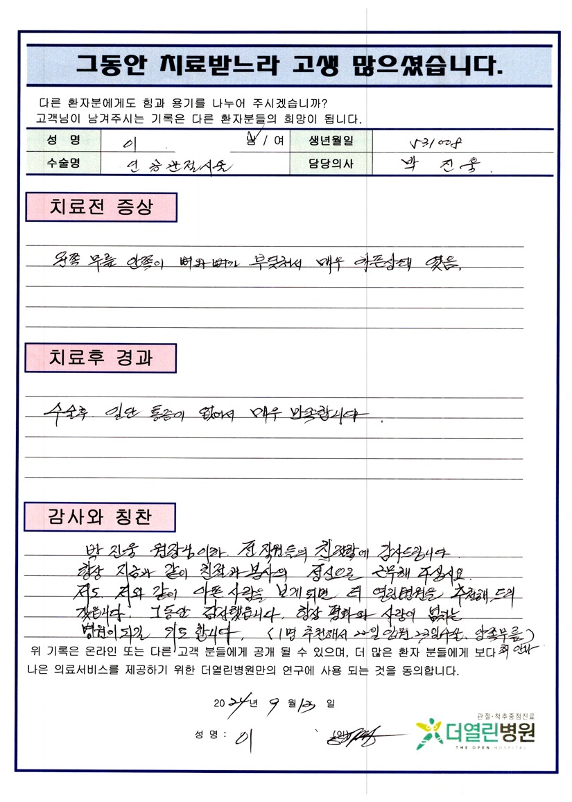 좌측 무릎 인공관절치환술 페이지 정보 작성자 관리자 댓글 0건 조회 95회 작성일 24-10-01 15:55 본문 목록 이전글좌측 반월상연골부분절제술 24.10.01 다음글양측 무릎 인공관절치환술 24.10.01 댓글목록 댓글목록 등록된 댓글이 없습니다.