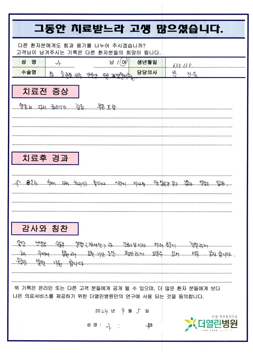 좌측 반월상연골부분절제술 페이지 정보 작성자 관리자 댓글 0건 조회 105회 작성일 24-10-01 15:56 본문 목록 이전글우측 반월상연골부분절제술 24.10.01 다음글좌측 무릎 인공관절치환술 24.10.01 댓글목록 댓글목록 등록된 댓글이 없습니다.