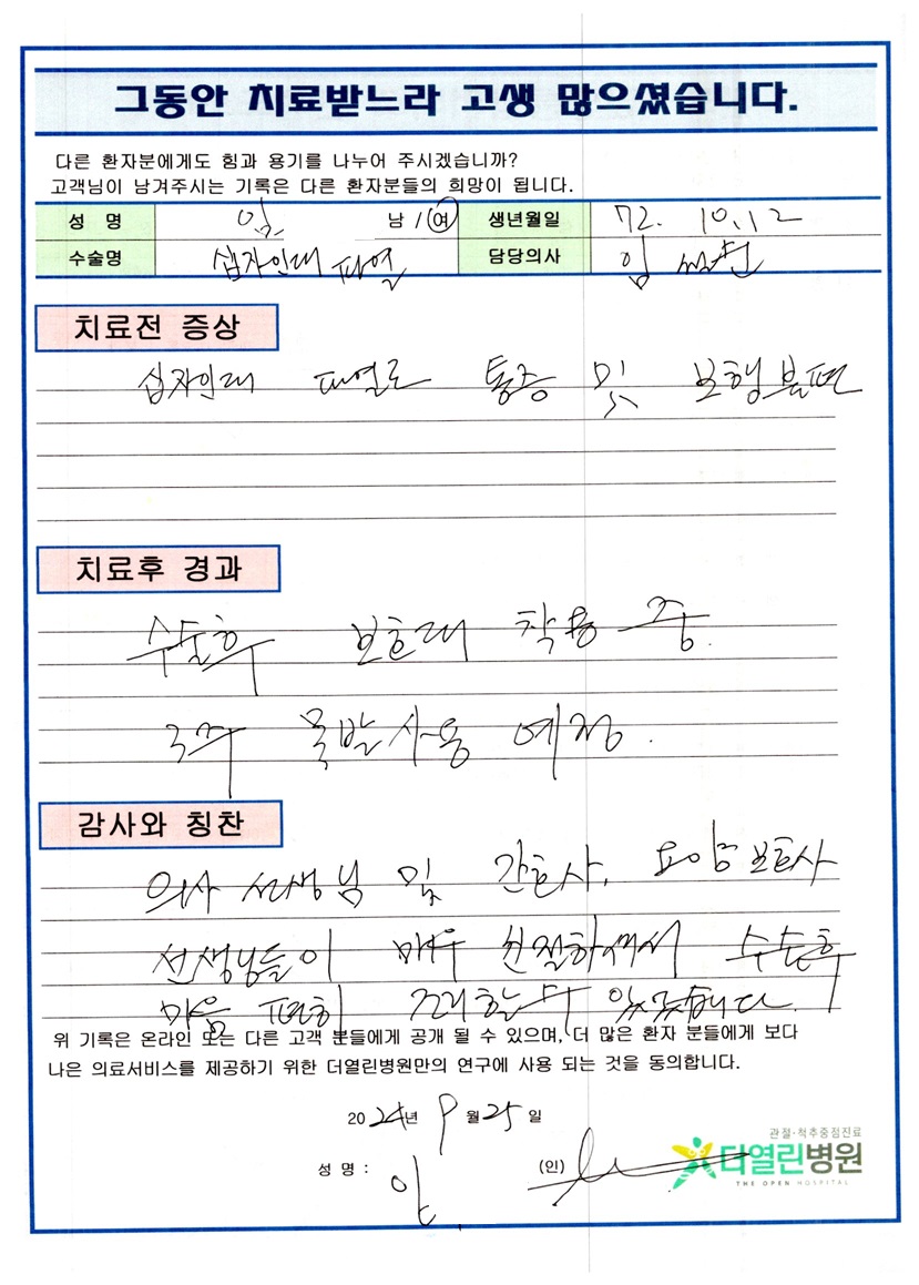좌측 전방십자인대 재건술 페이지 정보 작성자 관리자 댓글 0건 조회 103회 작성일 24-10-01 16:00 본문 목록 이전글양측 무릎 인공관절치환술 24.11.05 다음글좌측 무릎 인공관절치환술 24.10.01 댓글목록 댓글목록 등록된 댓글이 없습니다.
