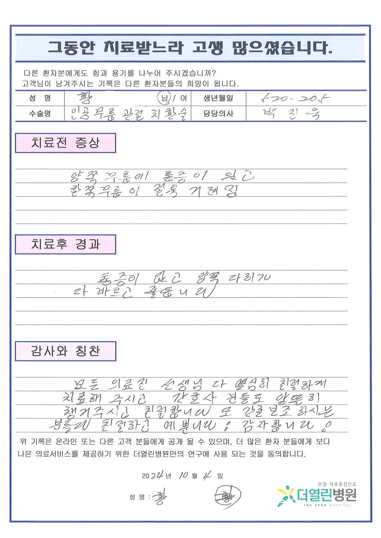 양측 무릎 인공관절치환술 페이지 정보 작성자 관리자 댓글 0건 조회 117회 작성일 24-11-05 16:00 본문 목록 이전글좌측 무릎 인공관절치환술 24.11.05 다음글우측 무릎 인공관절치환술 24.11.05 댓글목록 댓글목록 등록된 댓글이 없습니다.