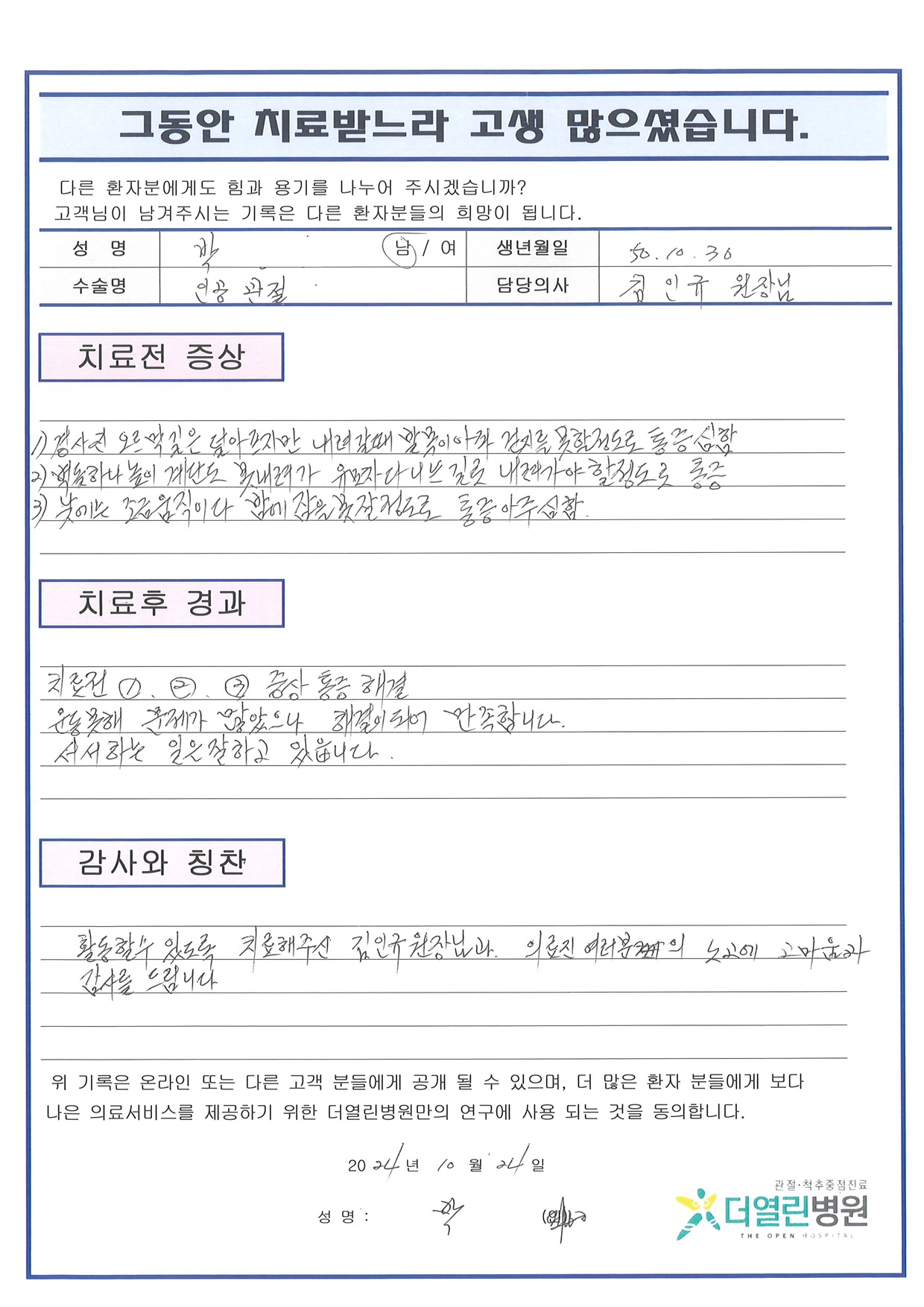우측 무릎 인공관절치환술 페이지 정보 작성자 관리자 댓글 0건 조회 115회 작성일 24-11-05 16:02 본문 목록 이전글좌측 무릎 인공관절치환술 24.11.05 다음글양측 무릎 인공관절치환술 24.11.05 댓글목록 댓글목록 등록된 댓글이 없습니다.