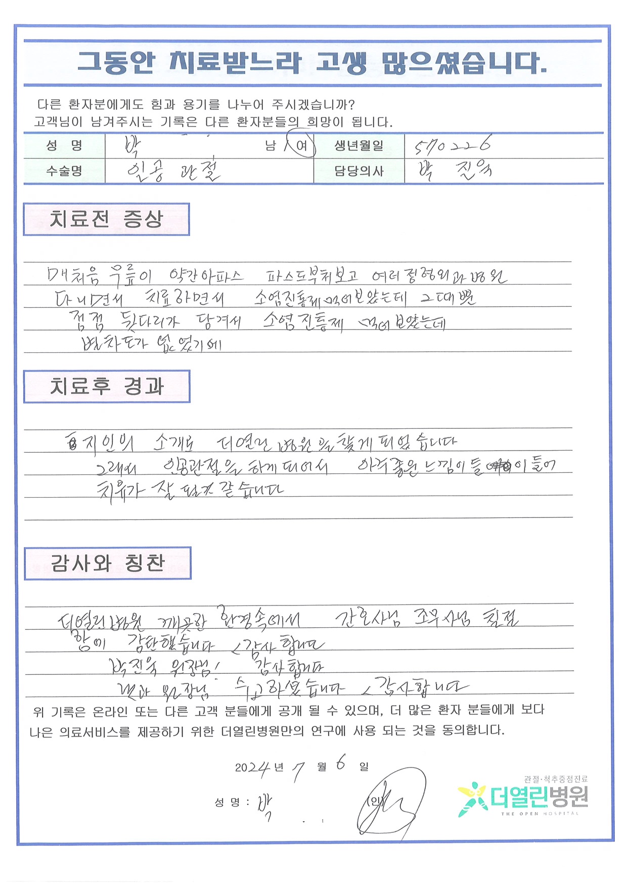 좌측 무릎 인공관절치환술 페이지 정보 작성자 관리자 댓글 0건 조회 143회 작성일 24-08-13 09:25 본문 목록 이전글양측 무릎 인공관절치환술 24.08.13 다음글우측 전방십자인대 재건술, 반월상연골절제술 24.07.04 댓글목록 댓글목록 등록된 댓글이 없습니다.