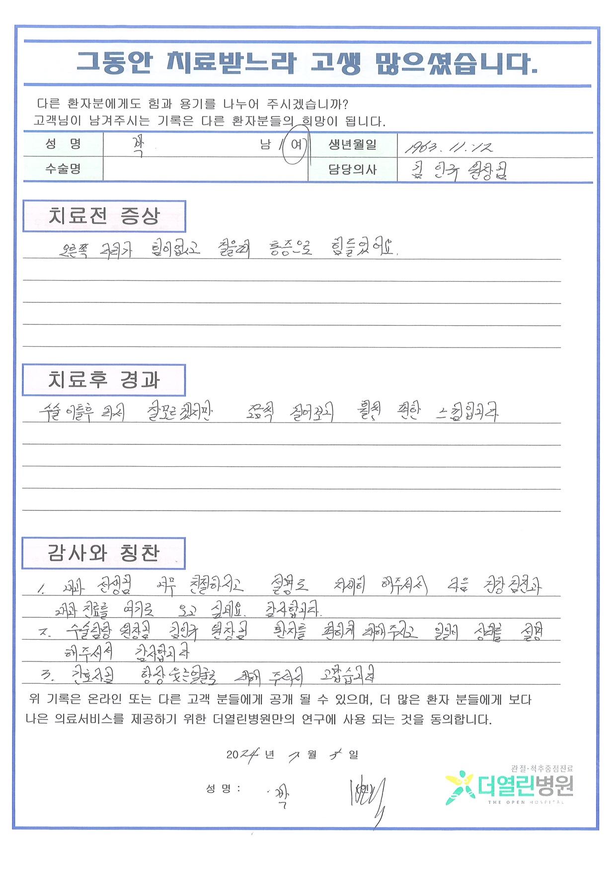 우측 반월상연골절제술 페이지 정보 작성자 관리자 댓글 0건 조회 111회 작성일 24-08-13 09:26 본문 목록 이전글양측 무릎 인공관절치환술 24.08.13 다음글우측 무릎 인공관절치환술 24.08.13 댓글목록 댓글목록 등록된 댓글이 없습니다.