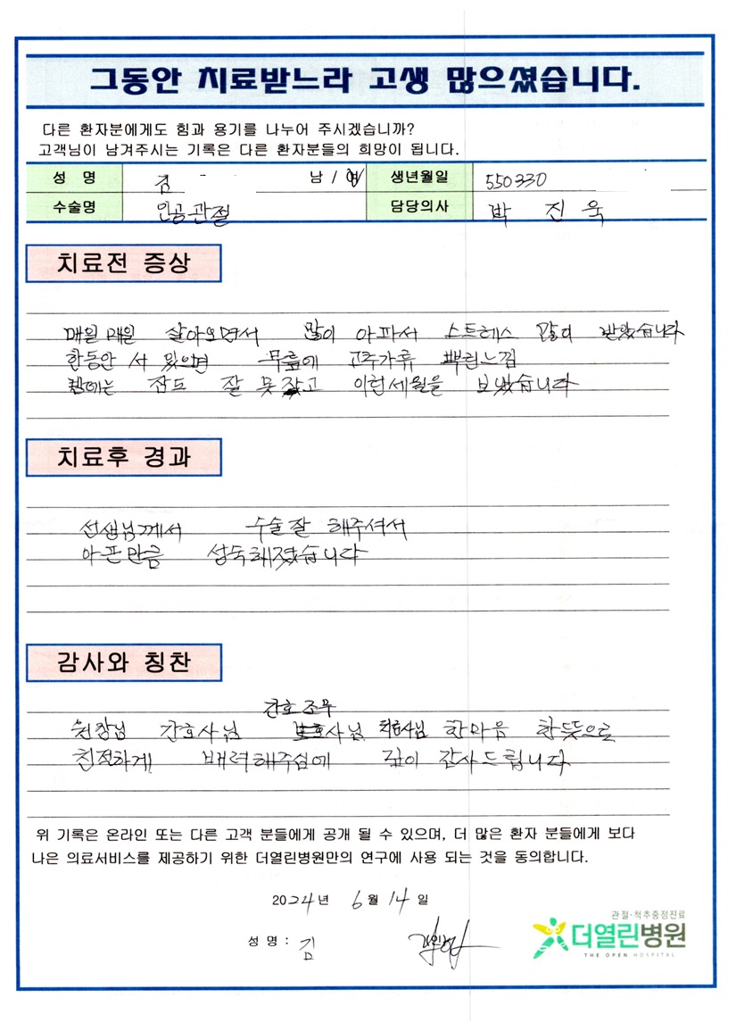 양측 무릎 인공관절치환술 페이지 정보 작성자 관리자 댓글 0건 조회 94회 작성일 24-07-04 15:52 본문 목록 이전글양측 무릎 인공관절치환술 24.07.04 다음글좌측 반월상연골절제술 24.07.04 댓글목록 댓글목록 등록된 댓글이 없습니다.