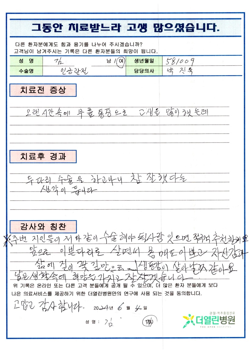 양측 무릎 인공관절치환술 페이지 정보 작성자 관리자 댓글 0건 조회 91회 작성일 24-07-04 15:53 본문 목록 이전글양측 무릎 인공관절치환술 24.07.04 다음글양측 무릎 인공관절치환술 24.07.04 댓글목록 댓글목록 등록된 댓글이 없습니다.