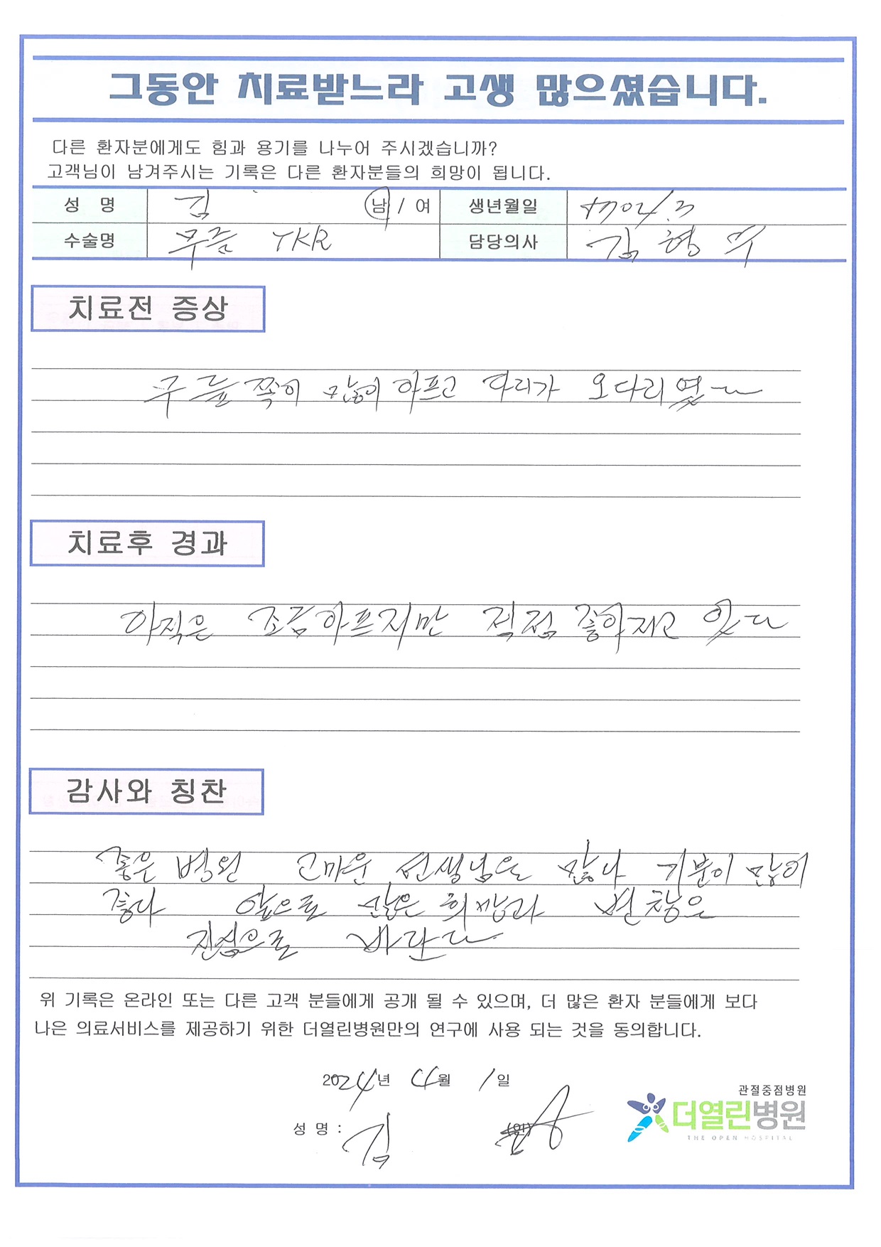 양측 무릎 인공관절치환술 페이지 정보 작성자 관리자 댓글 0건 조회 110회 작성일 24-05-04 11:56 본문 목록 이전글좌측 족관절 관혈적 정복술 및 금속 내고정술 24.05.04 다음글우측 족관절 전거비인대 보강술 24.05.04 댓글목록 댓글목록 등록된 댓글이 없습니다.