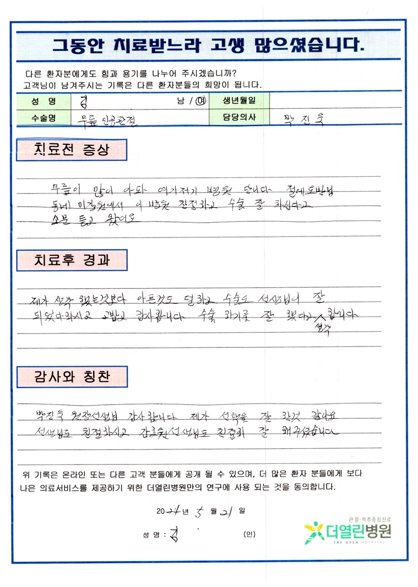 우측 무릎 인공관절치환술 페이지 정보 작성자 관리자 댓글 0건 조회 97회 작성일 24-06-04 12:24 본문 목록 이전글좌측 반월상연골절제술 24.06.04 다음글양측 무릎 인공관절치환술 24.06.04 댓글목록 댓글목록 등록된 댓글이 없습니다.