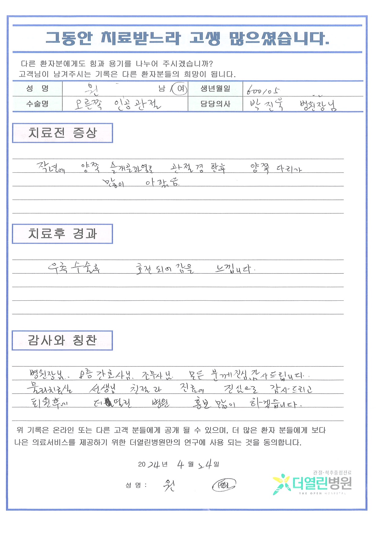 우측 무릎 인공관절치환술 페이지 정보 작성자 관리자 댓글 0건 조회 106회 작성일 24-05-04 11:48 본문 목록 이전글좌측 무릎 인공관절치환술 24.05.04 다음글양측 무릎 인공관절치환술 24.05.04 댓글목록 댓글목록 등록된 댓글이 없습니다.