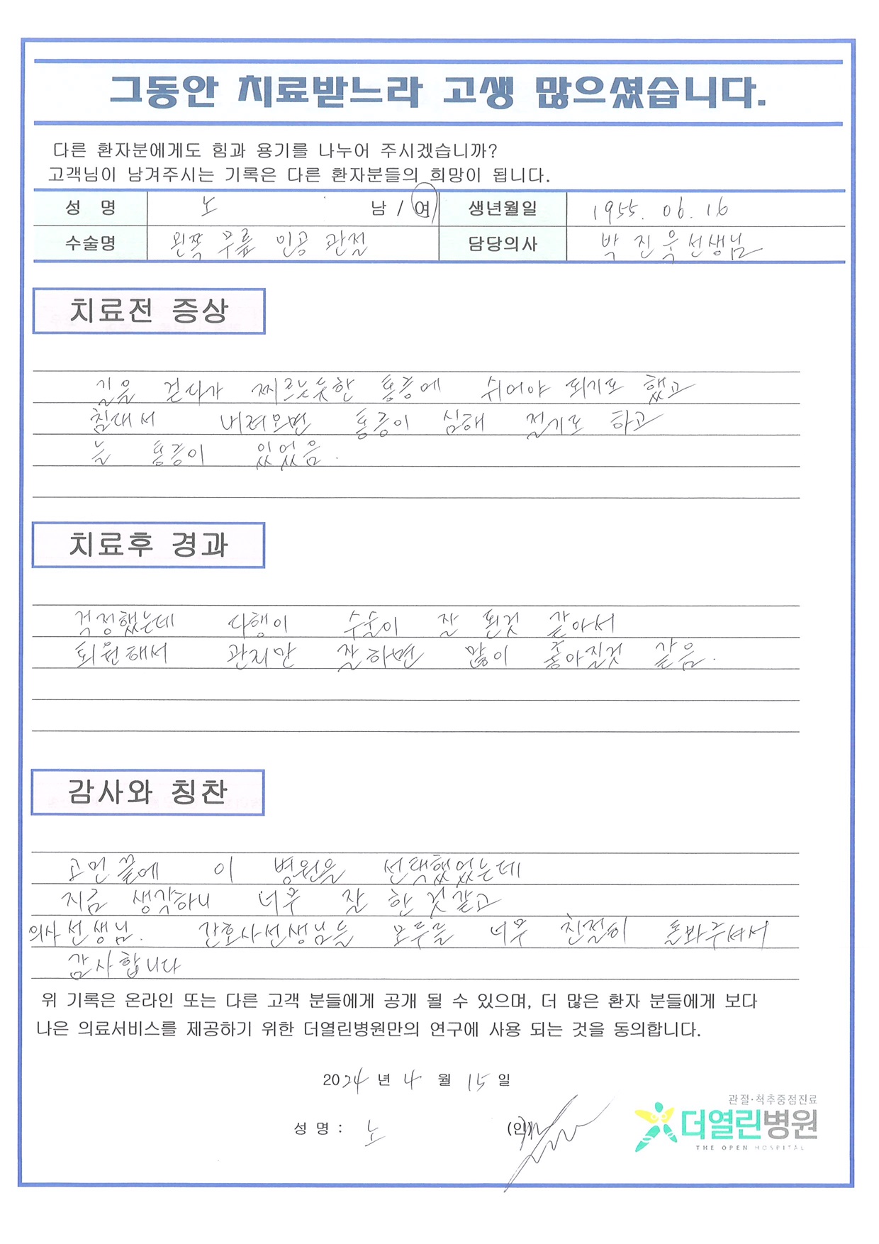 좌측 무릎 인공관절치환술 페이지 정보 작성자 관리자 댓글 0건 조회 105회 작성일 24-05-04 11:48 본문 목록 이전글우측 무릎 인공관절치환술 24.05.04 다음글우측 무릎 인공관절치환술 24.05.04 댓글목록 댓글목록 등록된 댓글이 없습니다.