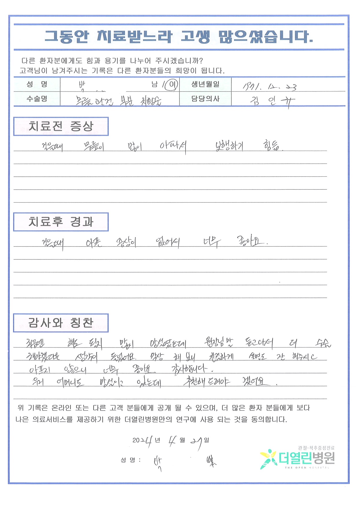 우측 무릎 인공관절부분치환술 페이지 정보 작성자 관리자 댓글 0건 조회 123회 작성일 24-05-04 11:52 본문 목록 이전글좌측 반월상연골봉합술 24.05.04 다음글양측 무릎 인공관절치환술 24.05.04 댓글목록 댓글목록 등록된 댓글이 없습니다.