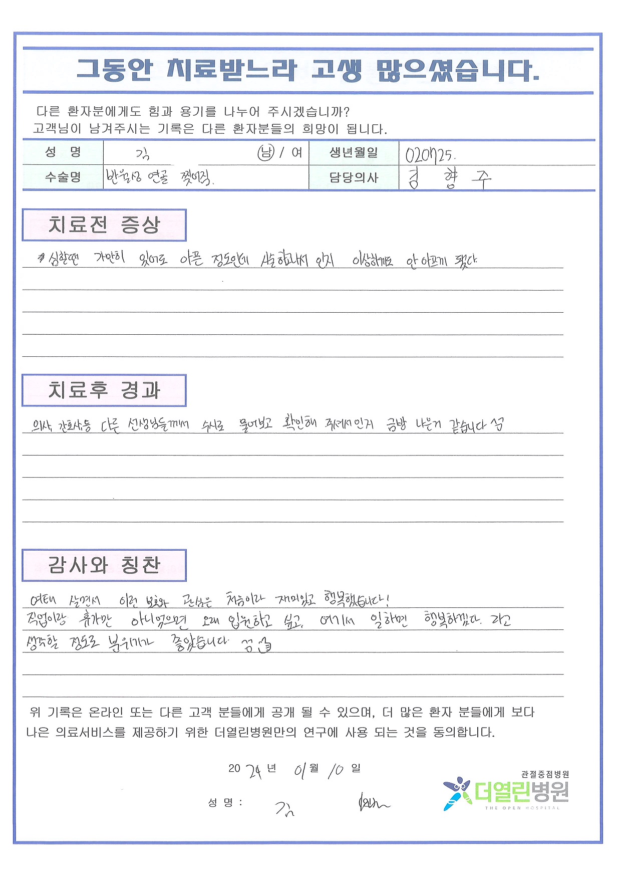 좌측 반월상연골절제술 페이지 정보 작성자 관리자 댓글 0건 조회 108회 작성일 24-02-01 14:38 본문 목록 이전글우측 반월상연골절제술 24.02.01 다음글양측 무릎 인공관절치환술 24.02.01 댓글목록 댓글목록 등록된 댓글이 없습니다.
