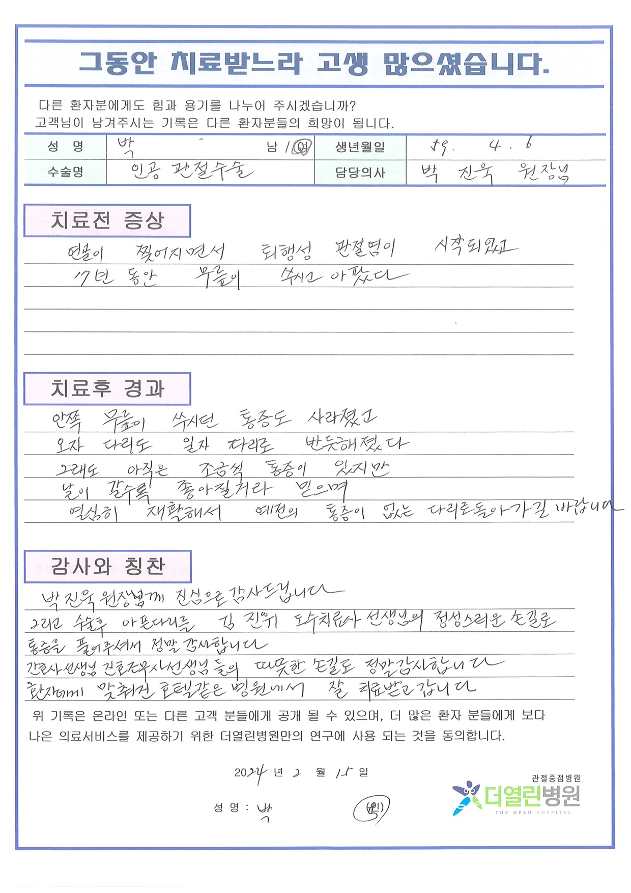 양측 무릎 인공관절치환술 페이지 정보 작성자 관리자 댓글 0건 조회 114회 작성일 24-03-06 13:45 본문 목록 이전글양측 무릎 인공관절치환술 24.03.06 다음글좌측 무릎 인공관절치환술 24.03.06 댓글목록 댓글목록 등록된 댓글이 없습니다.