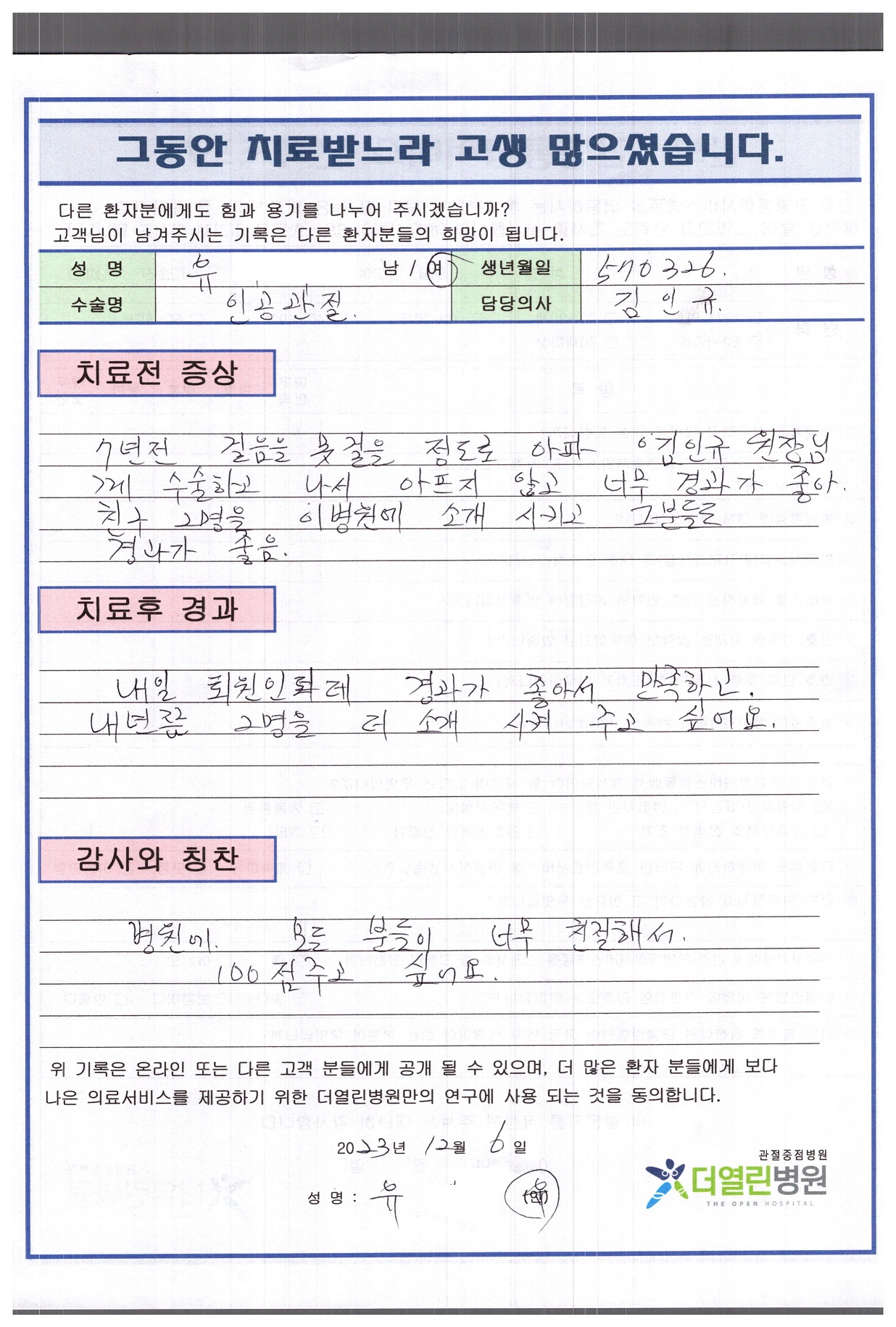 좌측 무릎 인공관절치환술 페이지 정보 작성자 관리자 댓글 0건 조회 89회 작성일 24-01-04 16:09 본문 목록 이전글양측 무릎 인공관절치환술 24.01.04 다음글우측 전방십자인대 재건술, 반월상연골봉합술 23.12.02 댓글목록 댓글목록 등록된 댓글이 없습니다.