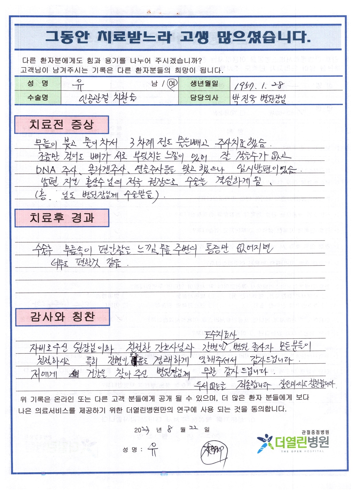 우측 무릎 인공관절치환술 페이지 정보 작성자 관리자 댓글 0건 조회 102회 작성일 23-09-07 16:17 본문 목록 이전글우측 무릎 인공관절치환술 23.09.07 다음글양측 무릎 인공관절치환술 23.09.07 댓글목록 댓글목록 등록된 댓글이 없습니다.