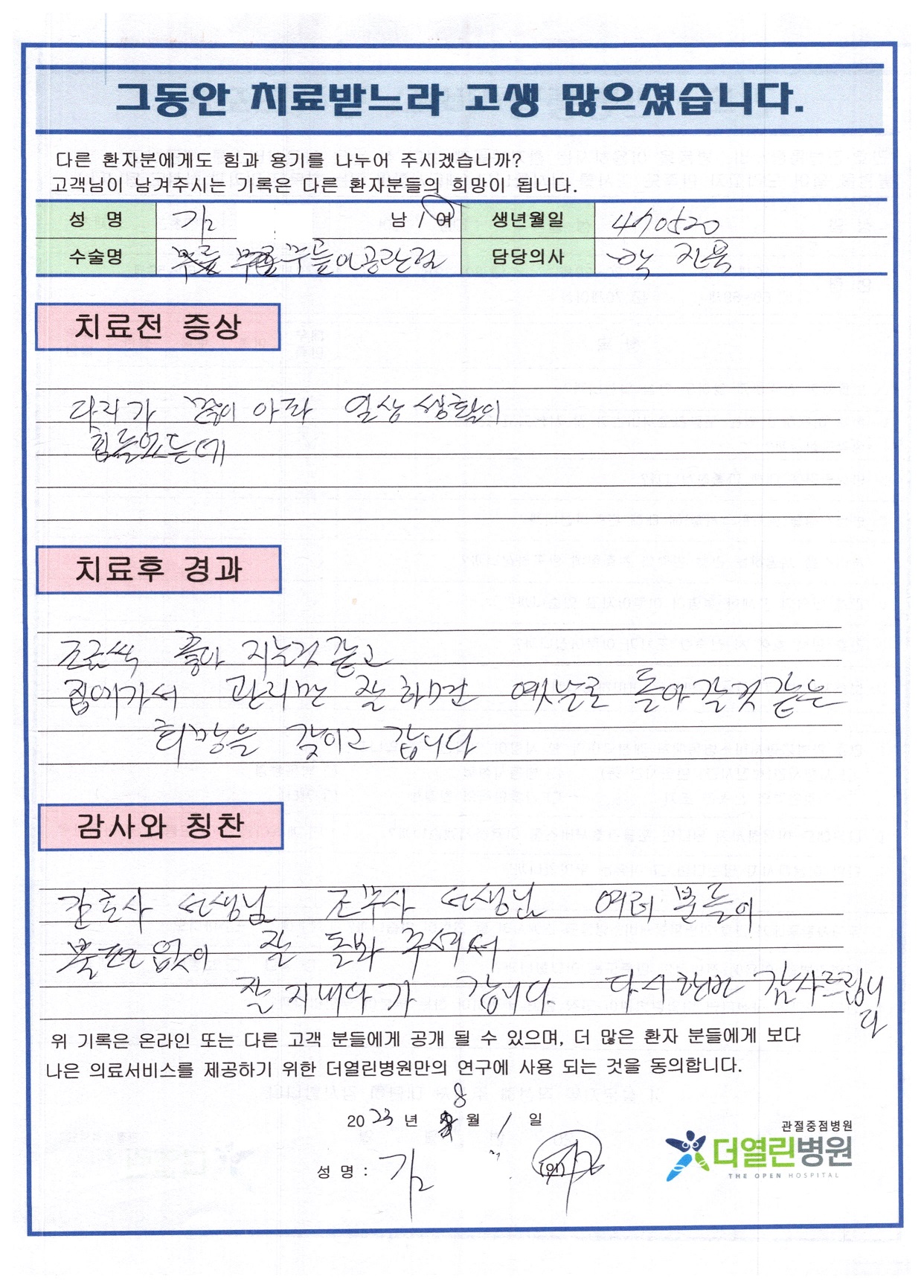 우측 무릎 인공관절치환술 페이지 정보 작성자 관리자 댓글 0건 조회 84회 작성일 23-09-07 16:17 본문 목록 이전글양측 무릎 인공관절치환술 23.09.07 다음글우측 무릎 인공관절치환술 23.09.07 댓글목록 댓글목록 등록된 댓글이 없습니다.