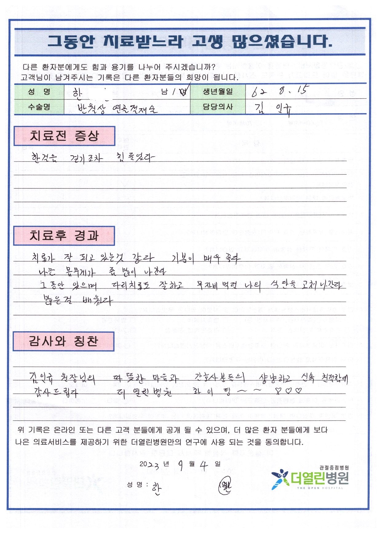 우측 반월상연골절제술 페이지 정보 작성자 관리자 댓글 0건 조회 86회 작성일 23-09-27 16:37 본문 목록 이전글양측 무릎 인공관절치환술 23.09.27 다음글양측 무릎 인공관절치환술 23.09.27 댓글목록 댓글목록 등록된 댓글이 없습니다.