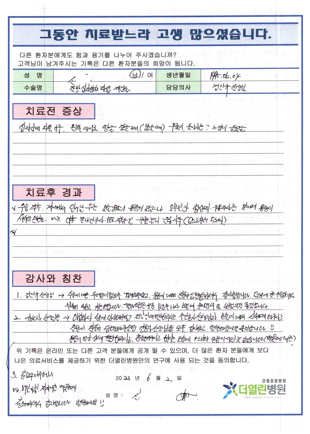 좌측 전방십자인대 재건술 페이지 정보 작성자 관리자 댓글 0건 조회 120회 작성일 23-07-03 10:40 본문 목록 이전글우측 반월상연골절제술 23.07.03 다음글좌측 전방십자인대 재건술 23.07.03 댓글목록 댓글목록 등록된 댓글이 없습니다.