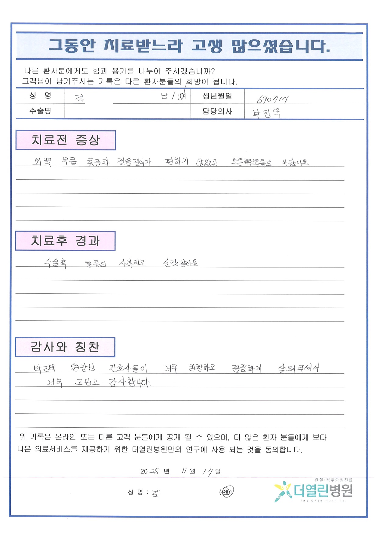 양측 반월상연골판부분절제술 페이지 정보 작성자 관리자 댓글 0건 조회 31회 작성일 25-12-03 14:22 본문 목록 이전글우측 무릎 반월상연골판 부분절제술 25.12.03 다음글우측 무릎 반월상연골절제술 25.12.03 댓글목록 댓글목록 등록된 댓글이 없습니다.