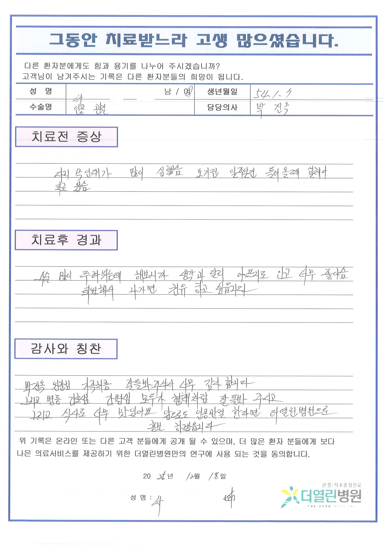 우측 무릎 인공관절치환술 페이지 정보 작성자 관리자 댓글 0건 조회 32회 작성일 26-01-06 09:42 본문 목록 이전글좌측 무릎 인공관절치환술 26.01.06 다음글양측 무릎 인공관절치환술 26.01.06 댓글목록 댓글목록 등록된 댓글이 없습니다.