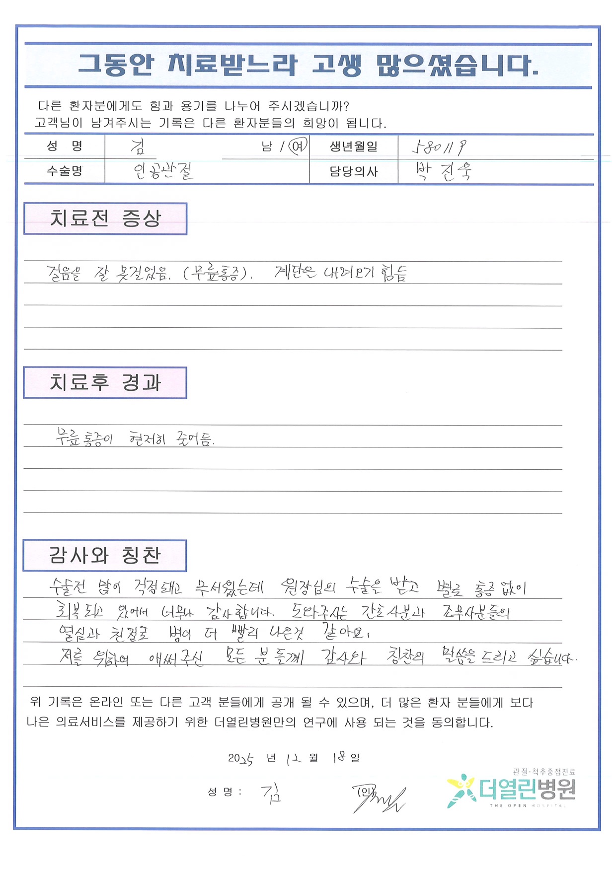 양측 무릎 인공관절치환술 페이지 정보 작성자 관리자 댓글 0건 조회 30회 작성일 26-01-06 09:42 본문 목록 이전글양측 무릎 인공관절치환술 26.01.06 다음글좌측 무릎 인공관절치환술 26.01.06 댓글목록 댓글목록 등록된 댓글이 없습니다.