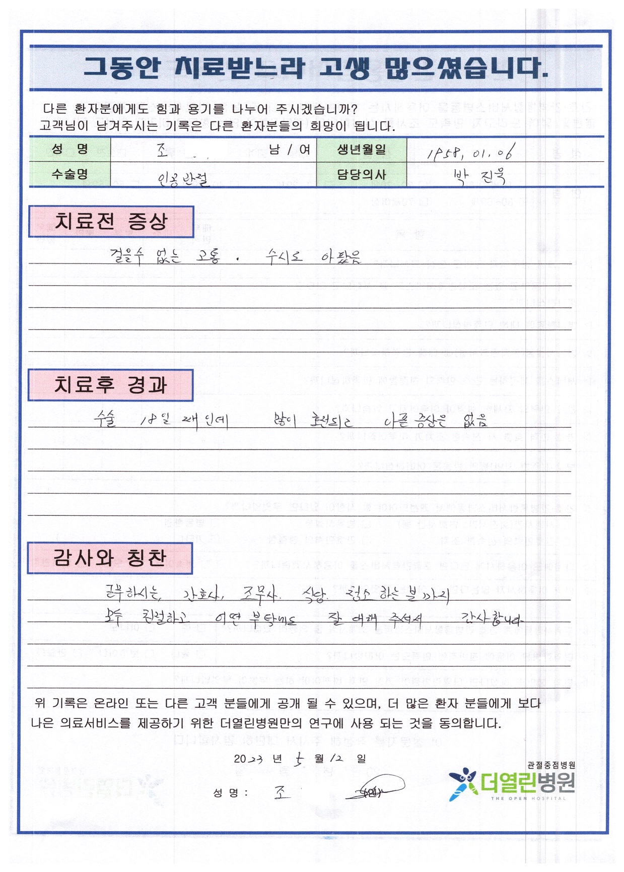 좌측 무릎 인공관절치환술 페이지 정보 작성자 관리자 댓글 0건 조회 94회 작성일 23-06-01 14:55 본문 목록 이전글양측 무릎 인공관절치환술 23.06.01 다음글좌측 무릎 인공관절치환술 23.06.01 댓글목록 댓글목록 등록된 댓글이 없습니다.
