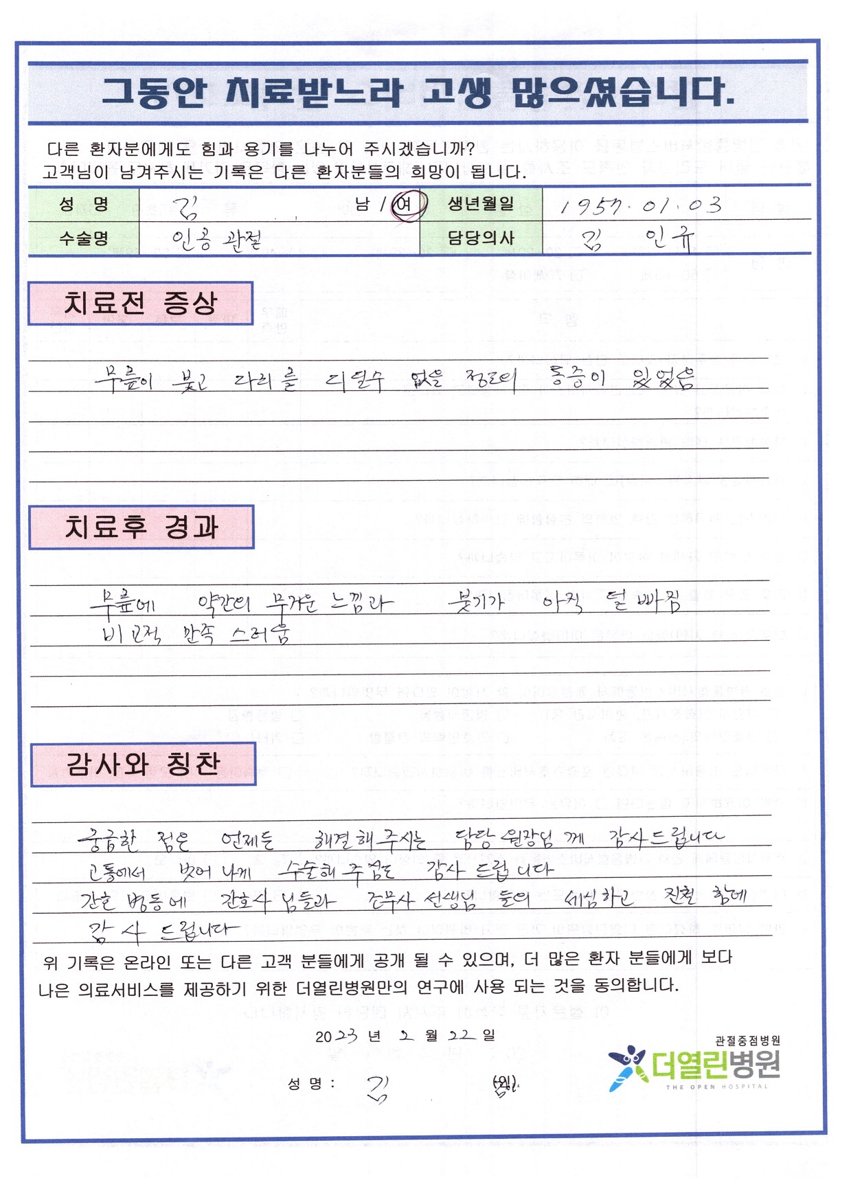 좌측 무릎 인공관절치환술 페이지 정보 작성자 관리자 댓글 0건 조회 88회 작성일 23-03-04 12:00 본문 목록 이전글좌측 반월상연골절제술 23.03.04 다음글좌측 무릎 인공관절치환술 23.03.04 댓글목록 댓글목록 등록된 댓글이 없습니다.