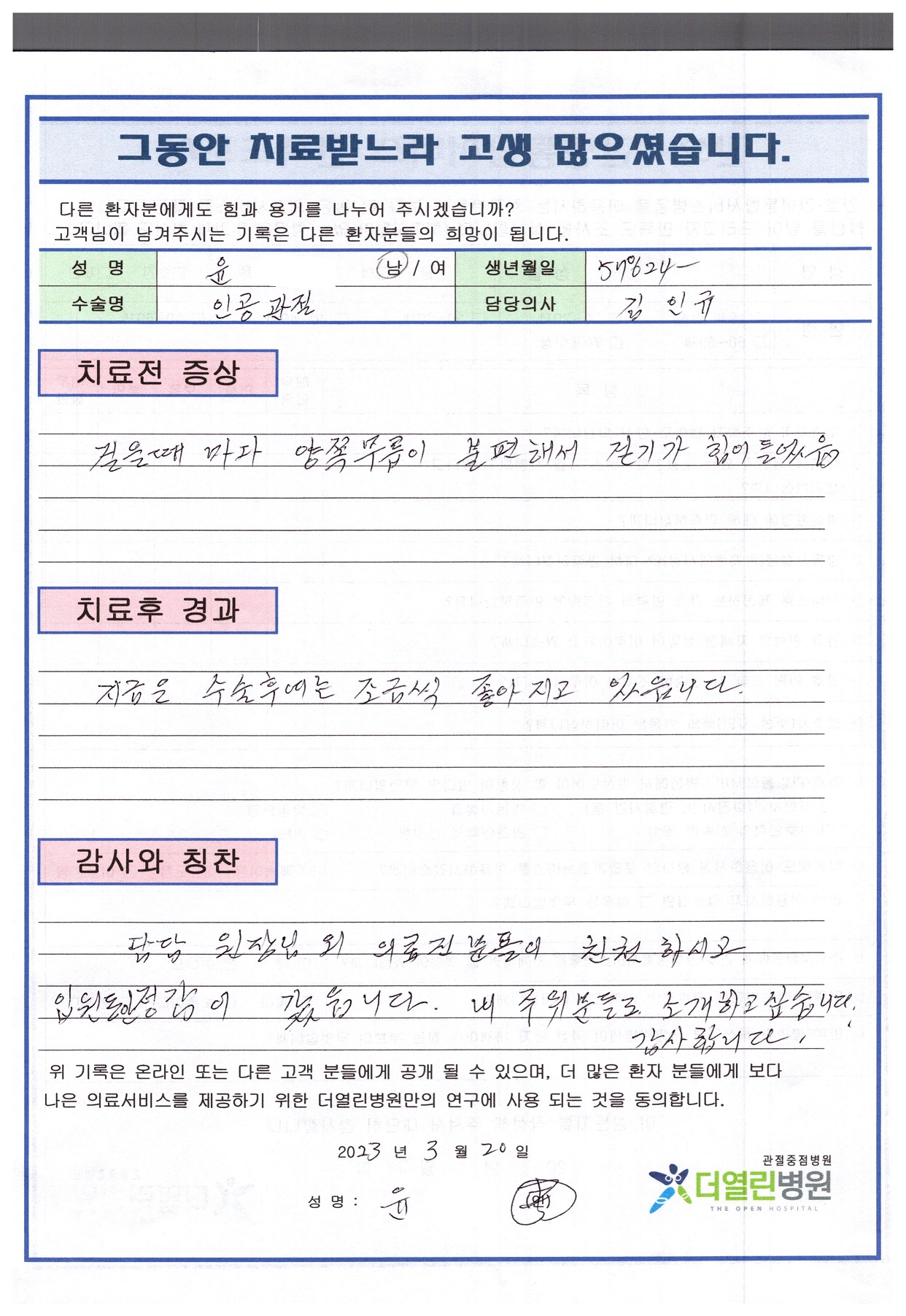 양측 슬관절 인공 관절 치환술 페이지 정보 작성자 관리자 댓글 0건 조회 82회 작성일 23-04-04 11:28 본문 목록 이전글양측 슬관절 인공 관절 치환술 23.04.04 다음글좌측 족관절 관혈적 정복술 및 금속 내고정술 23.04.04 댓글목록 댓글목록 등록된 댓글이 없습니다.