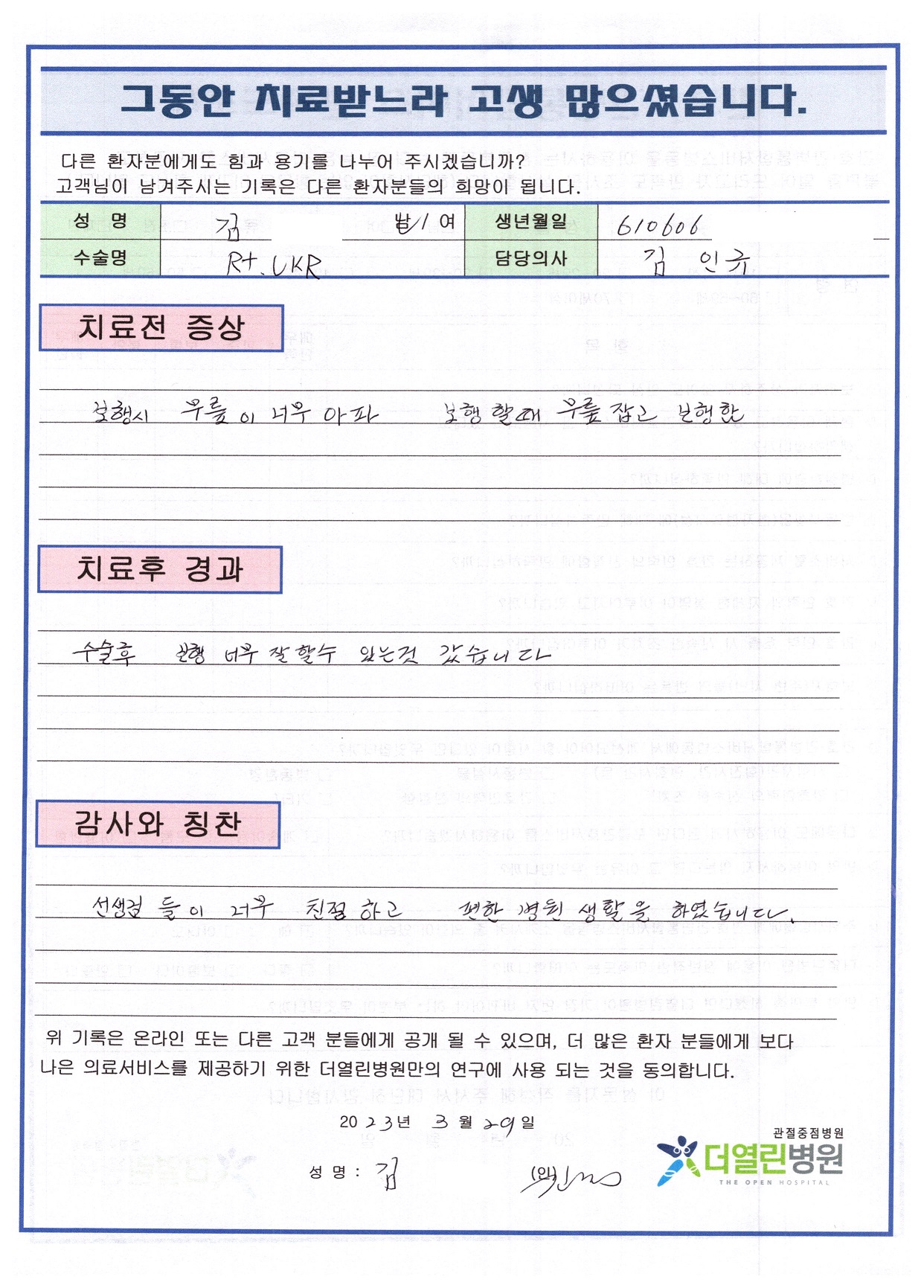 우측 무릎 인공관절부분치환술 페이지 정보 작성자 관리자 댓글 0건 조회 80회 작성일 23-04-04 11:31 본문 목록 이전글중족골 관혈적 정복술 후 금속판 고정술 23.04.04 다음글우측 슬관절 인공 관절 치환술 23.04.04 댓글목록 댓글목록 등록된 댓글이 없습니다.