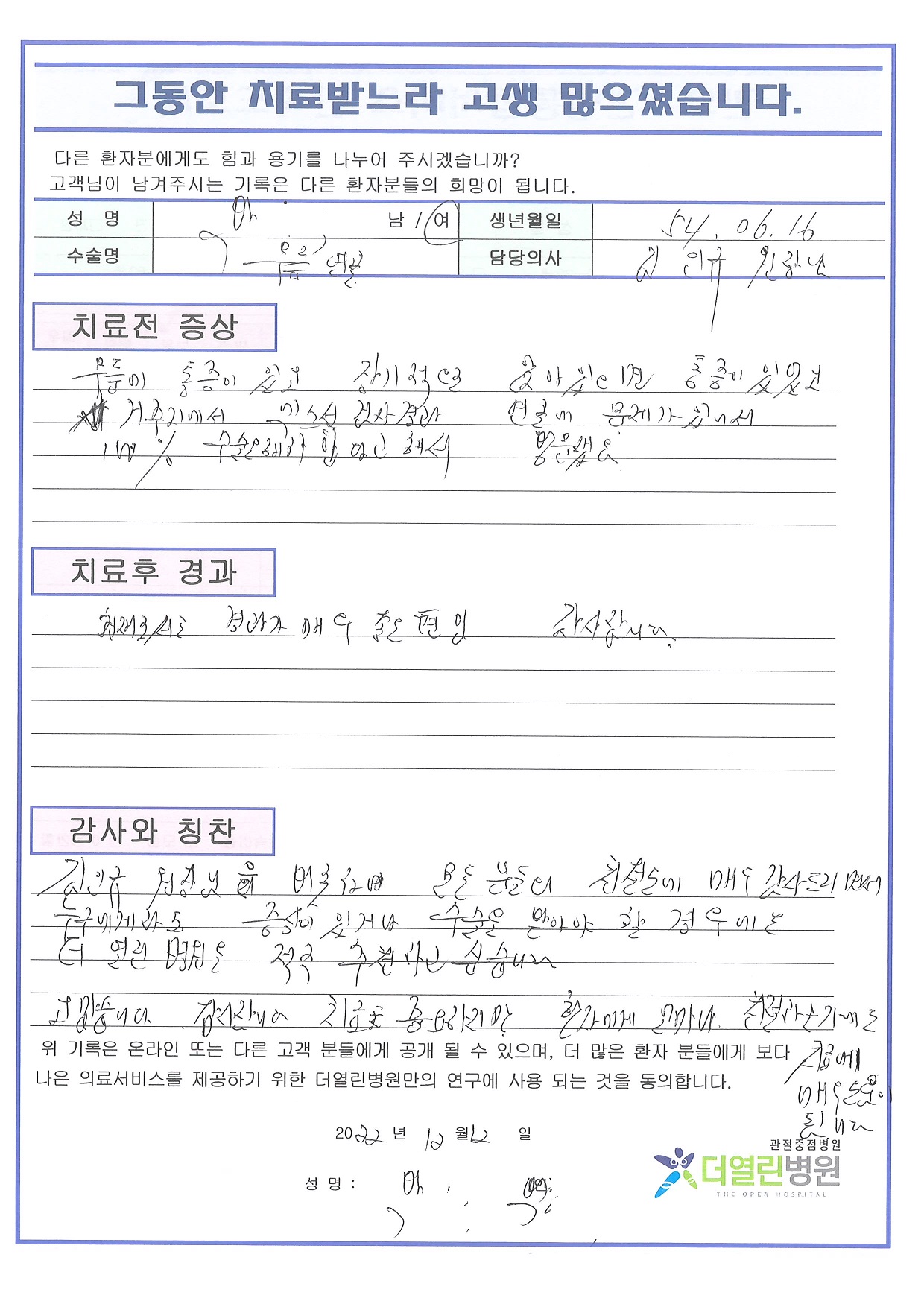 양측 무릎 인공관절치환술 페이지 정보 작성자 관리자 댓글 0건 조회 81회 작성일 23-01-03 08:51 본문 목록 이전글우측 무릎 인공관절부분치환술 23.01.03 다음글근위 경골 절골술 23.01.03 댓글목록 댓글목록 등록된 댓글이 없습니다.
