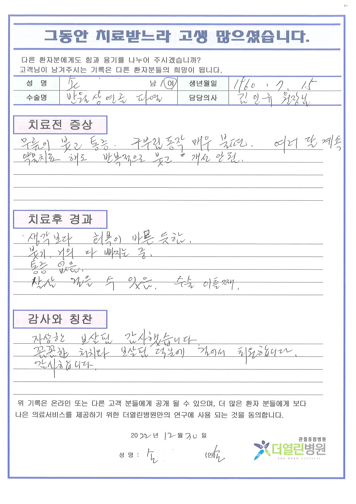 좌측 반월상연골절제술 페이지 정보 작성자 관리자 댓글 0건 조회 86회 작성일 23-01-03 08:56 본문 목록 이전글전방십자인대 재건술 23.02.04 다음글양측 반월상연골절제술 23.01.03 댓글목록 댓글목록 등록된 댓글이 없습니다.