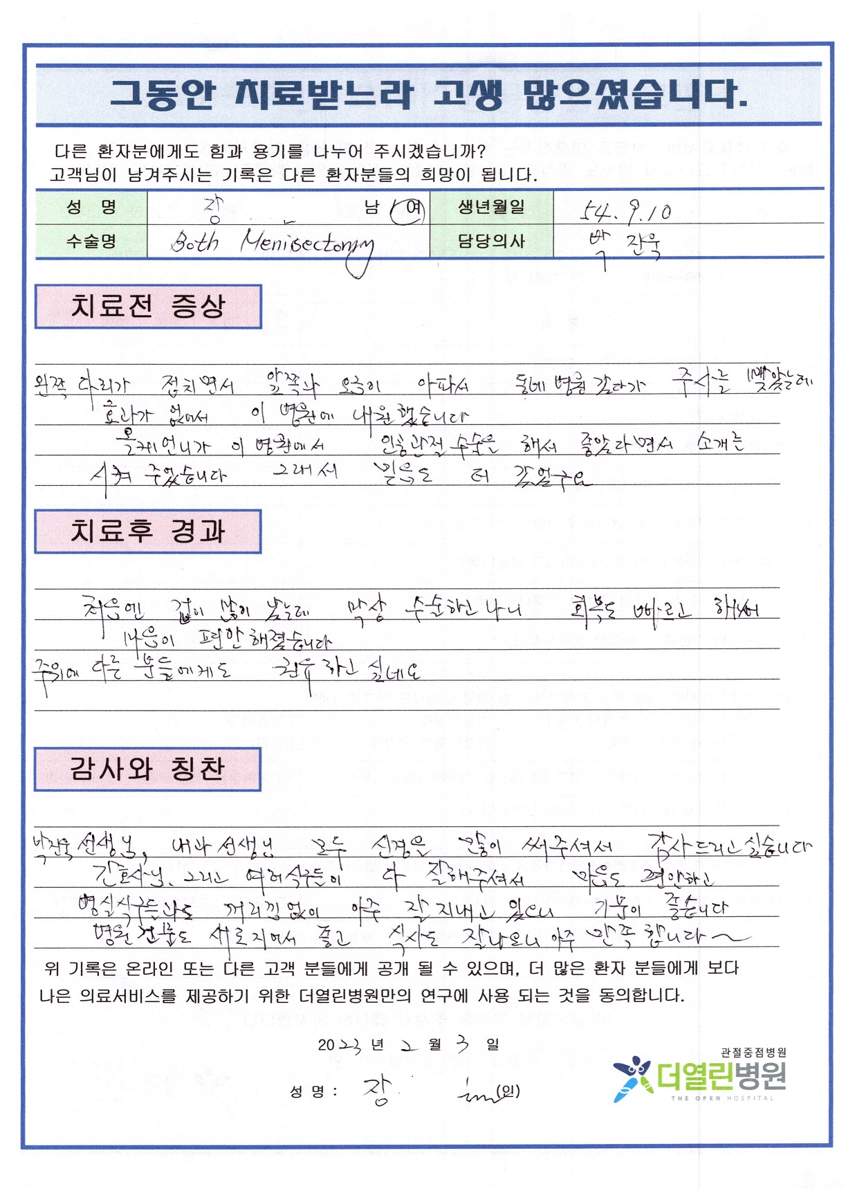 좌측 반월상연골절제술 페이지 정보 작성자 관리자 댓글 0건 조회 102회 작성일 23-03-04 11:57 본문 목록 이전글좌측 반월상연골절제술 23.03.04 다음글양측 무릎 인공관절치환술 23.03.04 댓글목록 댓글목록 등록된 댓글이 없습니다.