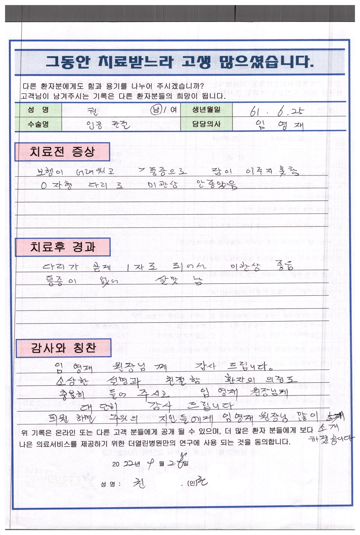 좌측 무릎인공관절치환술 페이지 정보 작성자 관리자 댓글 0건 조회 83회 작성일 22-10-05 12:05 본문 목록 이전글좌측 반월상연골절제술 22.11.04 다음글좌측 반월상연골절제술 22.10.05 댓글목록 댓글목록 등록된 댓글이 없습니다.