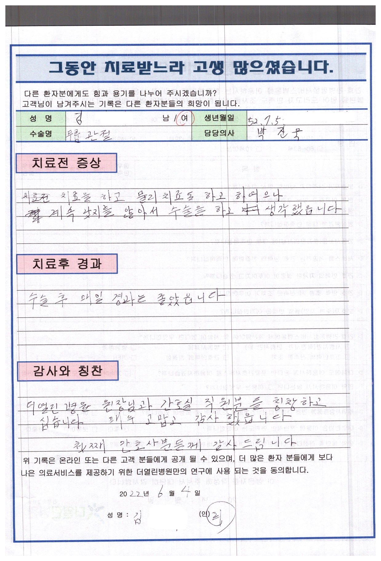 우측 무릎 인공관절치환술 페이지 정보 작성자 관리자 댓글 0건 조회 73회 작성일 22-07-04 13:50 본문 목록 이전글반월상 연골 봉합술 22.07.04 다음글후궁절제술 22.06.08 댓글목록 댓글목록 등록된 댓글이 없습니다.