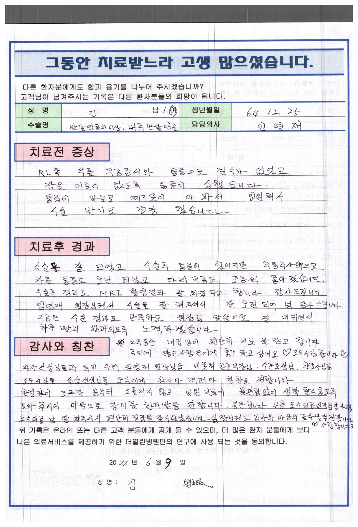 반월상 연골 봉합술 페이지 정보 작성자 관리자 댓글 0건 조회 80회 작성일 22-07-04 13:54 본문 목록 이전글우측 반월상 연골 절제술 22.07.04 다음글우측 무릎 인공관절치환술 22.07.04 댓글목록 댓글목록 등록된 댓글이 없습니다.